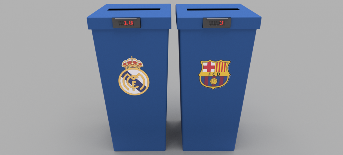 Papeleras con contador digital de residuos ingresados. Ideal para colocar dos juntas y competir por la recogida de desperdicios en…