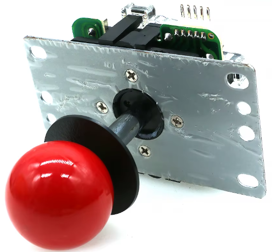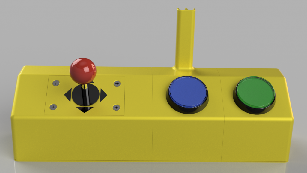 Por lo que proponemos el uso de un joystick (palanca de 4 estados) a la izquierda para simular las pulsaciones de las teclas de desplazamiento y dos pulsadores de contacto a la derecha.