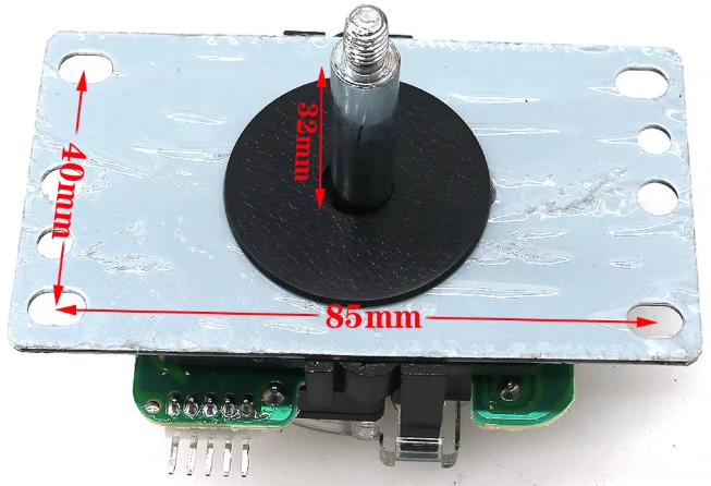El modelo de palanca usado es básico y resistente. Consta de 4 interruptores internos unidos por uno de sus bornes que emplearemos de masa común y que corresponden como es lógico a las 4 direcciones espaciales posibles. De esa manera y como se puede observar en las imágenes, se necesitan solo 5 pines para su uso.