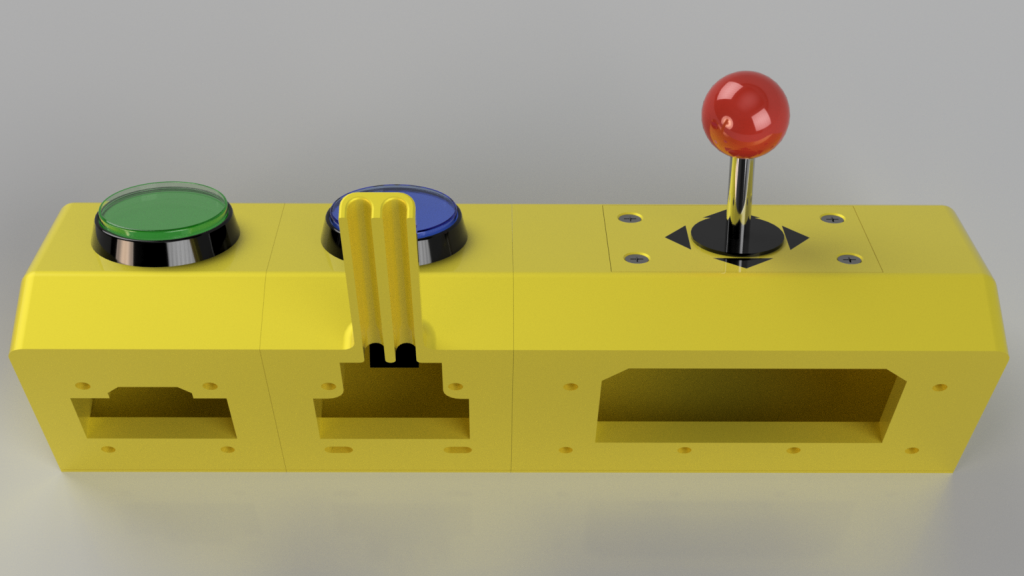 Será la más grande. En ella ubicaremos el joystick y se han reforzado los agarres para que sea más resistente a la manipulación. Estará colocada a la izquierda de la barra de control. Consta de un hueco en su parte trasera por la que pasarán los cables de activación.
