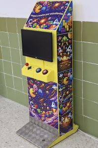 Reutilizaremos materiales desechados para dar vida a una máquina recreativa de videojuegos para niños y realizados por ellos, empleando «Makey Makey» como interface entre los controles y un PC.