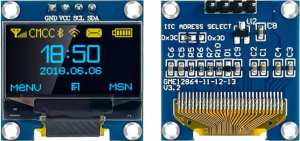 Se comercializan unas pequeñas pantallas OLED de 0.96” listas para conectar a Arduino. Estas pantallas incorporan el controlador SDD1306 y tienen un tamaño muy reducido de 25mm x 14mm. Tienen una resolución de 128×64 pixels y son monocromáticas, aunque en nuestro caso usaremos unas que están fabricadas a dos colores (amarillo y azul).