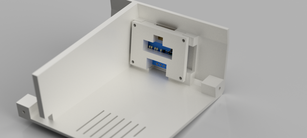 La pantalla cuenta con unos orificios para su sujeción que no son del todo cómodos, y para nuestro proyectos hemos fabricado una pieza especial que nos facilitará su colocación, como se muestra en la siguiente imagen.