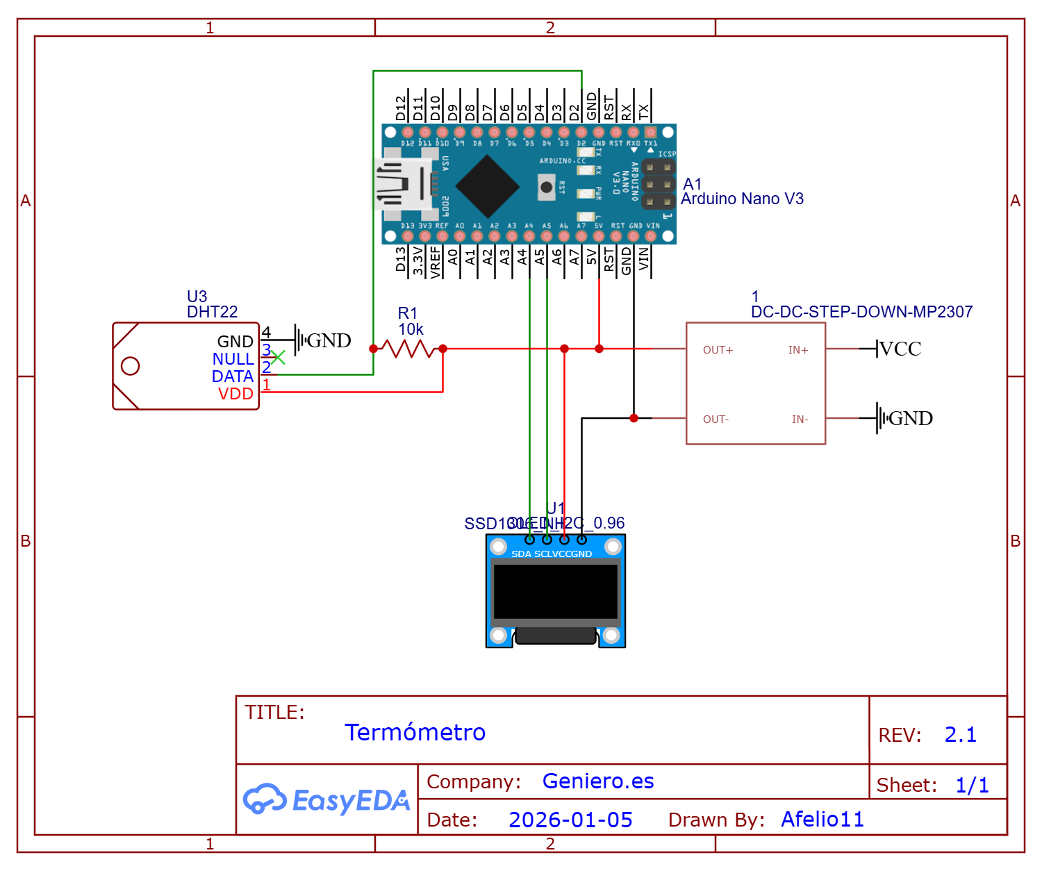 #include <SPI.h> #include <Wire.h> #include <Adafruit_GFX.h> #include <Adafruit_SSD1306.h> #include <Fonts/FreeSansBold12pt7b.h> #include <SimpleDHT.h> #define SCREEN_WIDTH 128 // OLED display width, in pixels #define SCREEN_HEIGHT 64 // OLED display height, in pixels // Declaration for an SSD1306 display connected to I2C (SDA, SCL pins) // The pins for I2C are defined by the Wire-library. // On an arduino UNO: A4(SDA), A5(SCL) // On an arduino MEGA 2560: 20(SDA), 21(SCL) // On an arduino LEONARDO: 2(SDA), 3(SCL), ... #define OLED_RESET -1 // Reset pin # (or -1 if sharing Arduino reset pin) #define SCREEN_ADDRESS 0x3C ///< See datasheet for Address; 0x3C for 128x64, 0x3D for 128x32 Adafruit_SSD1306 display(SCREEN_WIDTH, SCREEN_HEIGHT, &Wire, OLED_RESET); #define pinDHT22 2 SimpleDHT22 dht22(pinDHT22); float valor = 0; float humedad = 0; float tempMin = 22; // valor inicial muy alto float tempMax = 13; // valor inicial muy bajo int err = SimpleDHTErrSuccess; void setup() { Serial.begin(9600); Serial.println("Saludos, termometro 2/1/2026"); // Wait for display delay(500); if (!display.begin(SSD1306_SWITCHCAPVCC, SCREEN_ADDRESS)) { Serial.println(F("SSD1306 allocation failed")); for (;;) ; // Don't proceed, loop forever } display.clearDisplay(); display.setFont(&FreeSansBold12pt7b); display.setTextSize(1); // Normal 1:5 pixel scale display.setTextColor(SSD1306_WHITE); // Draw white text display.setCursor(35, 15); display.print("2026"); display.setCursor(8, 50); display.print("GENIERO"); display.display(); display.setTextSize(2); delay(1500); } void loop() { if ((err = dht22.read2(&valor, &humedad, NULL)) != SimpleDHTErrSuccess) { Serial.print("No se encuentra Termometro, err="); Serial.println(err); delay(2000); return; } // Actualizar temperatura mínima if (valor < tempMin) { tempMin = valor; } // Actualizar temperatura máxima if (valor > tempMax) { tempMax = valor; } display.clearDisplay(); int barraY = 6; int barraAltura = 8; // Marco display.drawRect(0, barraY, 128, barraAltura, SSD1306_WHITE); // Ancho proporcional a la humedad int anchoBarra = (int)(humedad * 128.0 / 100.0); // Relleno display.fillRect(1, barraY + 1, anchoBarra - 2, barraAltura - 2, SSD1306_WHITE); //linea central if (humedad <= 50) { display.drawLine(62, barraY, 62, barraY + barraAltura - 1, SSD1306_WHITE); } else { display.drawLine(62, barraY, 62, barraY + barraAltura - 1, SSD1306_BLACK); } // Convertimos a texto con 1 decimal char buffer[10]; dtostrf(valor, 0, 1, buffer); // 1 decimal if (valor != tempMax && valor != tempMin) { printSpaced(buffer, 3, 59, 40); } else { printmax(buffer, 3, 59, 40); } display.display(); // DHT22 sampling rate is 0.5HZ. delay(2000); } void printSpaced(String txt, int x, int y, int spacing) { // imprimimos el entero display.setTextColor(SSD1306_WHITE); // texto invertido for (int i = 0; i < 2; i++) { display.setCursor(x + i * spacing, y); display.print(txt[i]); } //Aquí se imprimen el punto y los decimales display.setCursor(77, y); display.print(txt[2]); display.setCursor(97, y); display.print(txt[3]); } void printmax(String txt, int x, int y, int spacing) { // imprimimos el entero display.fillRect(0, 22, 128, 64, SSD1306_WHITE); display.setTextColor(SSD1306_BLACK); // texto invertido for (int i = 0; i < 2; i++) { display.setCursor(x + i * spacing, y); display.print(txt[i]); } //Aquí se imprimen el punto y los decimales display.setCursor(77, y); display.print(txt[2]); display.setCursor(97, y); display.print(txt[3]); } |